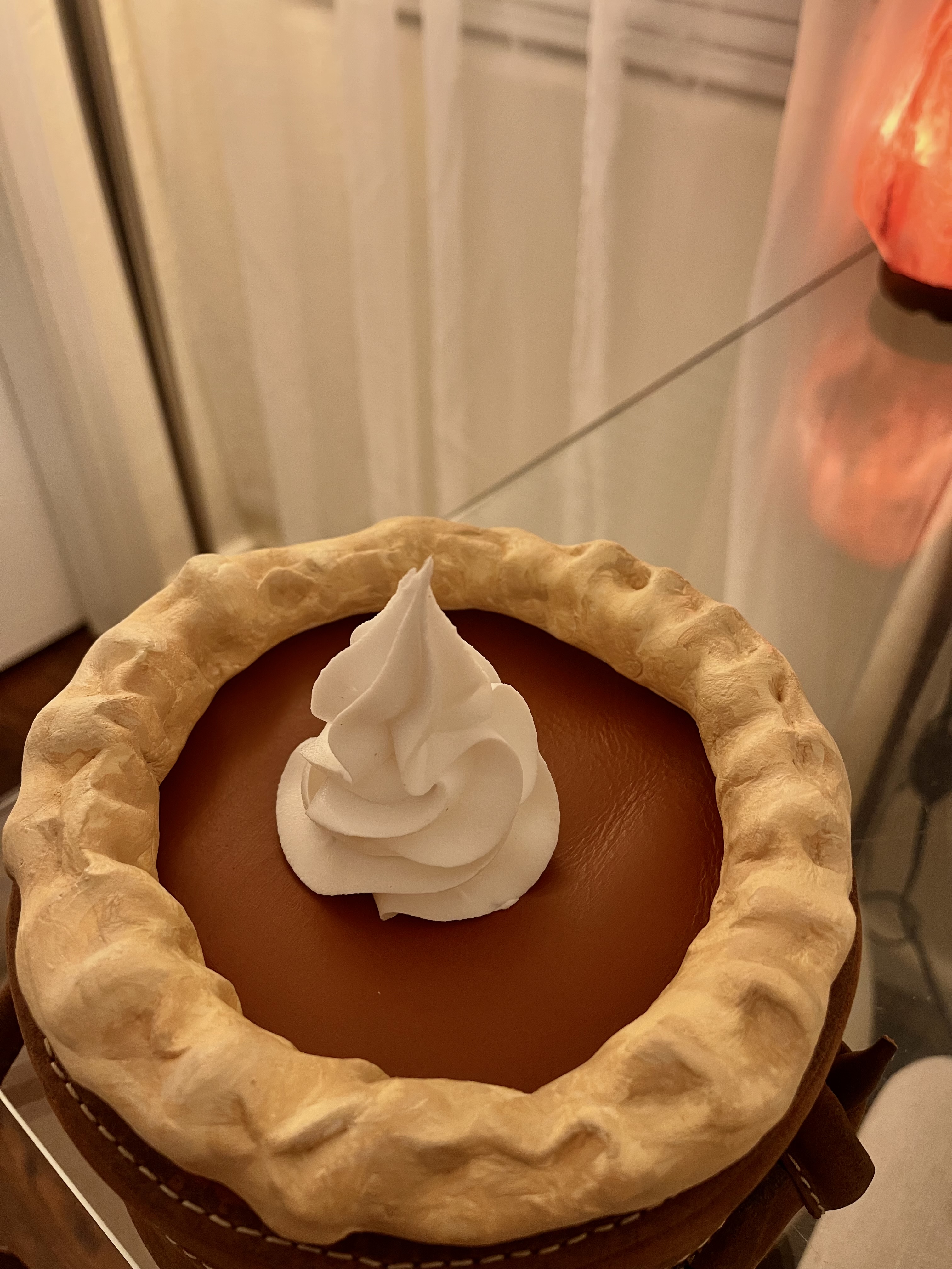 In 2023, I was planning a pumpkin-themed outfit for a fall trip to Disney. I wanted an accessory that would tie the whole look together and that’s when inspiration struck. With the help of a few YouTube tutorials to research “fake bake” techniques, lots of trial and error, and the determination to create something unique, I crafted my very first bag: a pumpkin pie-inspired purse.